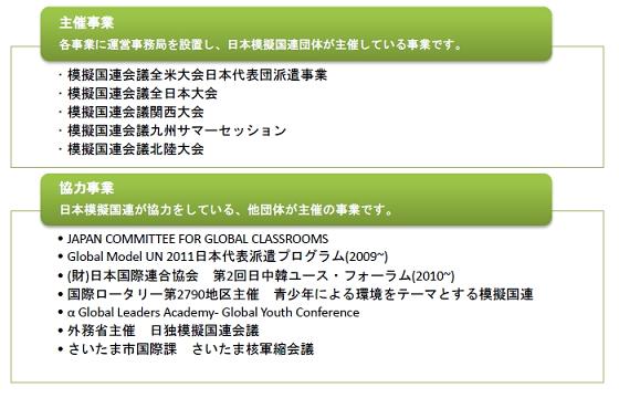 現在、日本では日本模擬国連という団体があり、 この下に「日本模擬国連関東事務局」、「日本模擬国連関西事務局」が属しています。