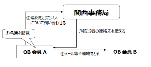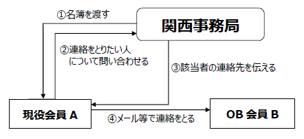 3、連絡を取りたい方がいらっしゃったら関西事務局へ問い合わせていただきます。